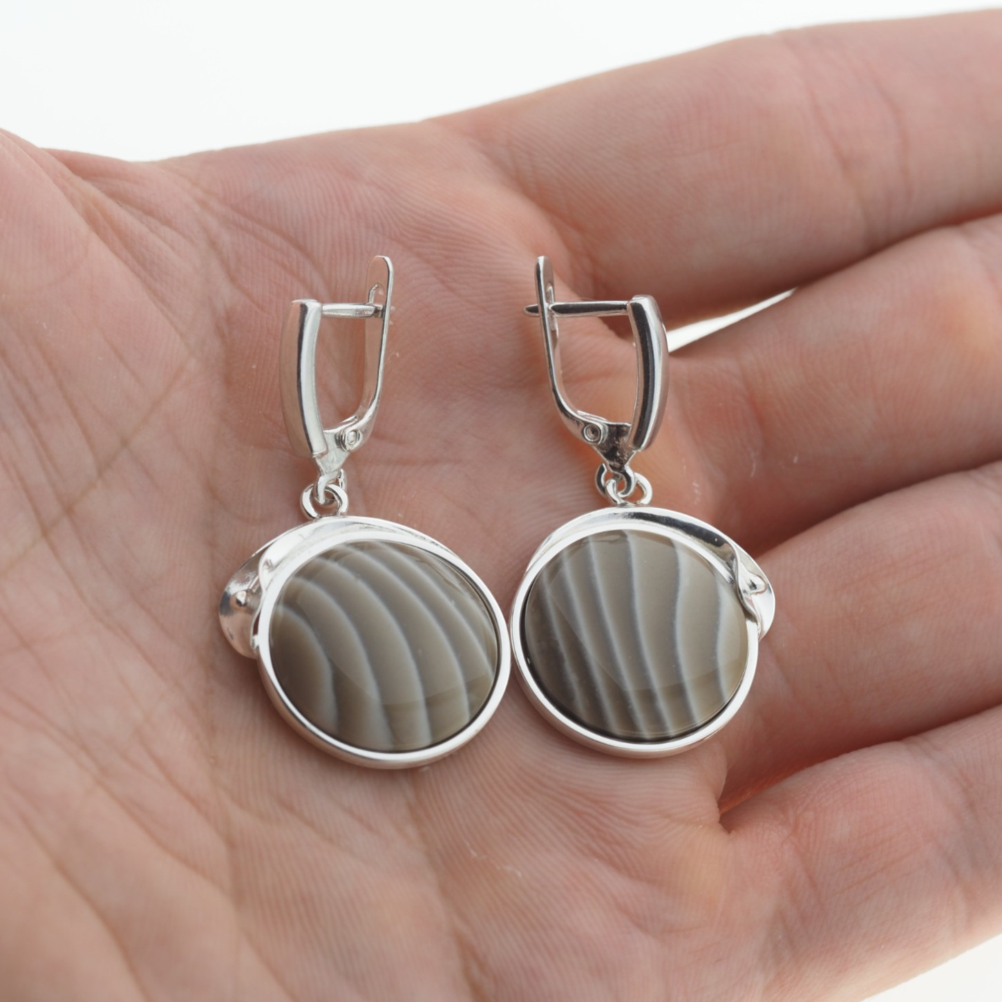 Srebrne kolczyki z Krzemieniem Pasiastym – ręcznie wykonane, srebro 925