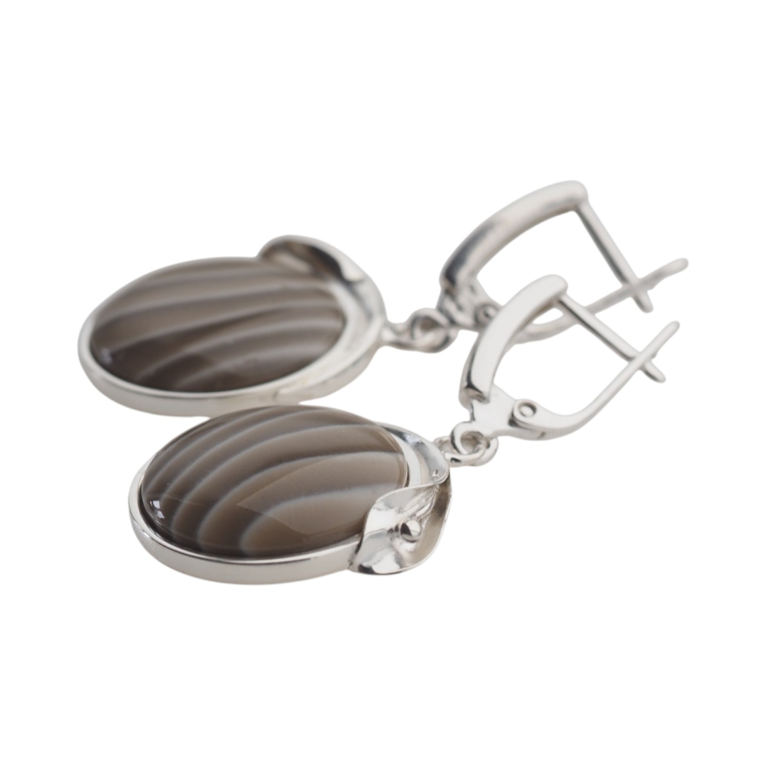 Srebrne kolczyki z Krzemieniem Pasiastym – artystyczna oprawa, srebro 925