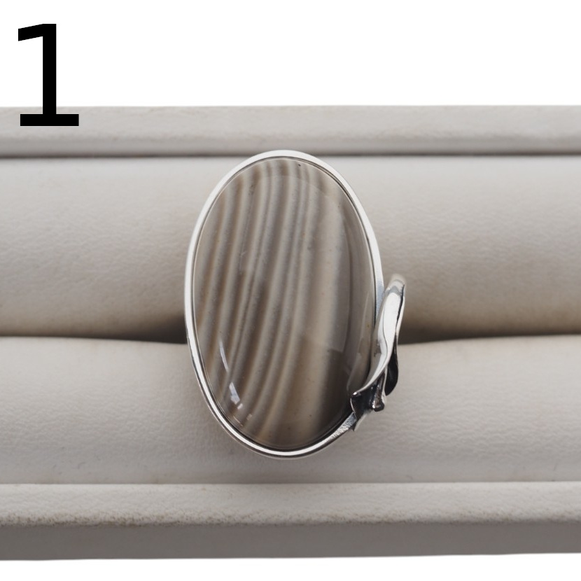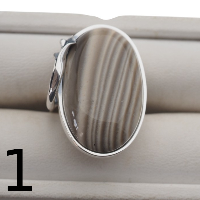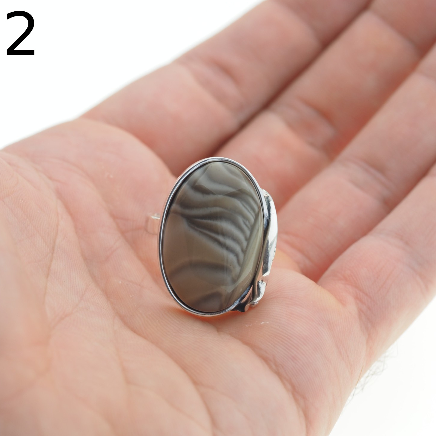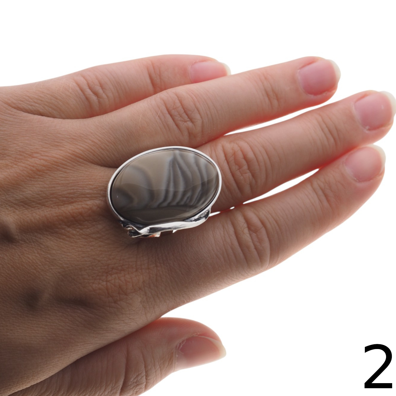 Srebrny pierścionek z Krzemieniem Pasiastym – ręcznie wykonany, srebro oksydowane 925