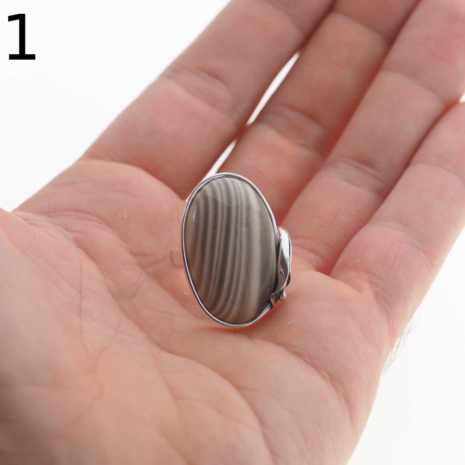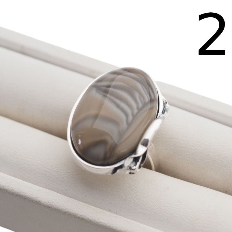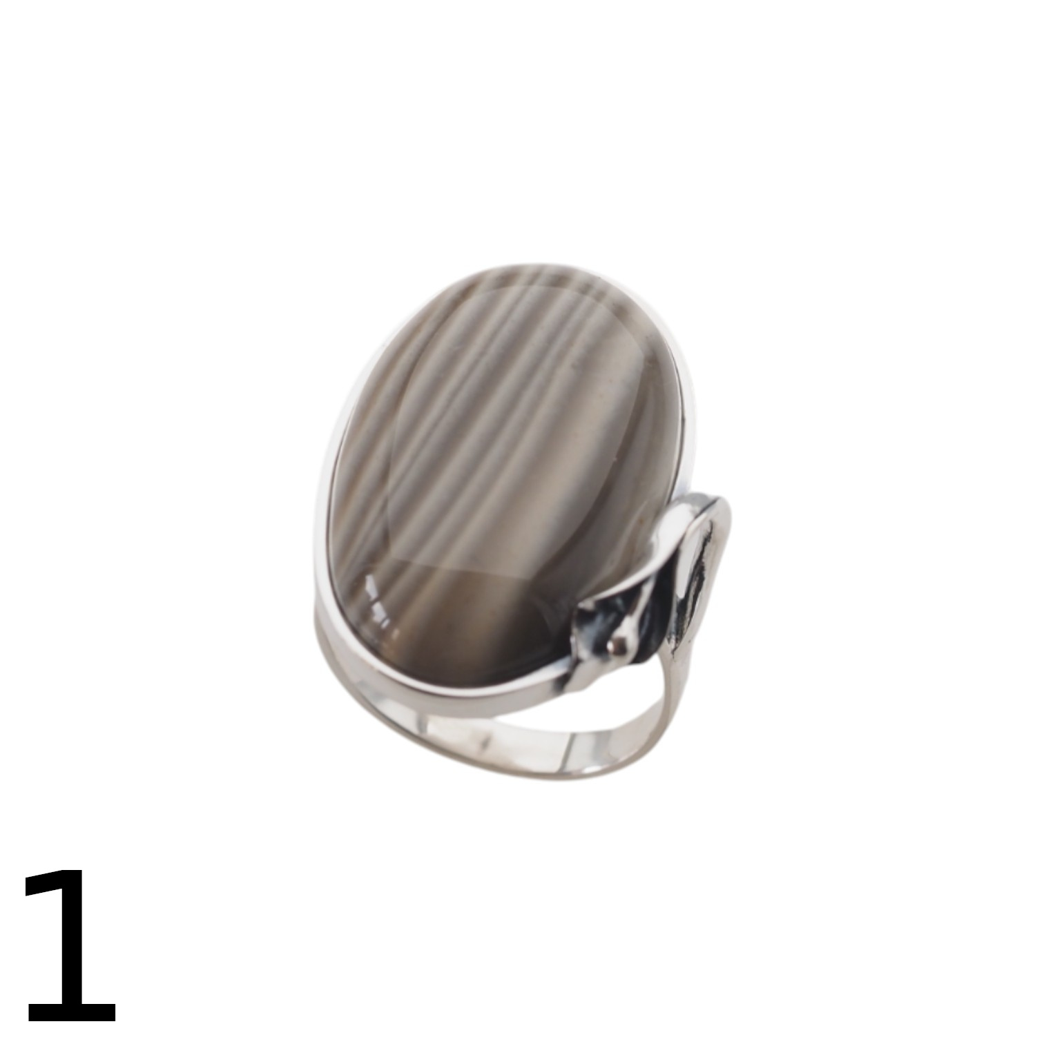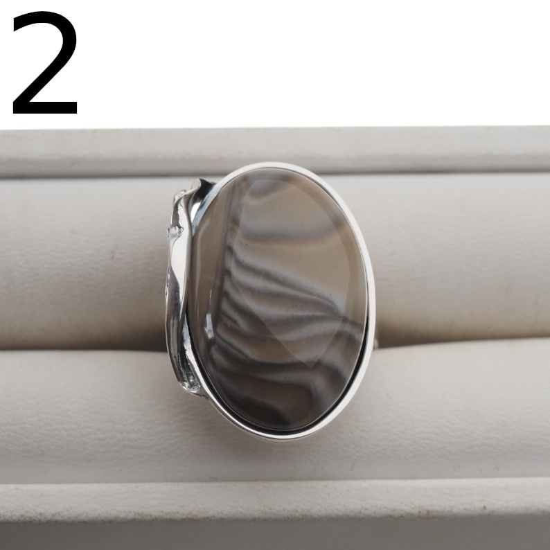 Srebrny pierścionek z Krzemieniem Pasiastym – ręcznie wykonany, srebro oksydowane 925