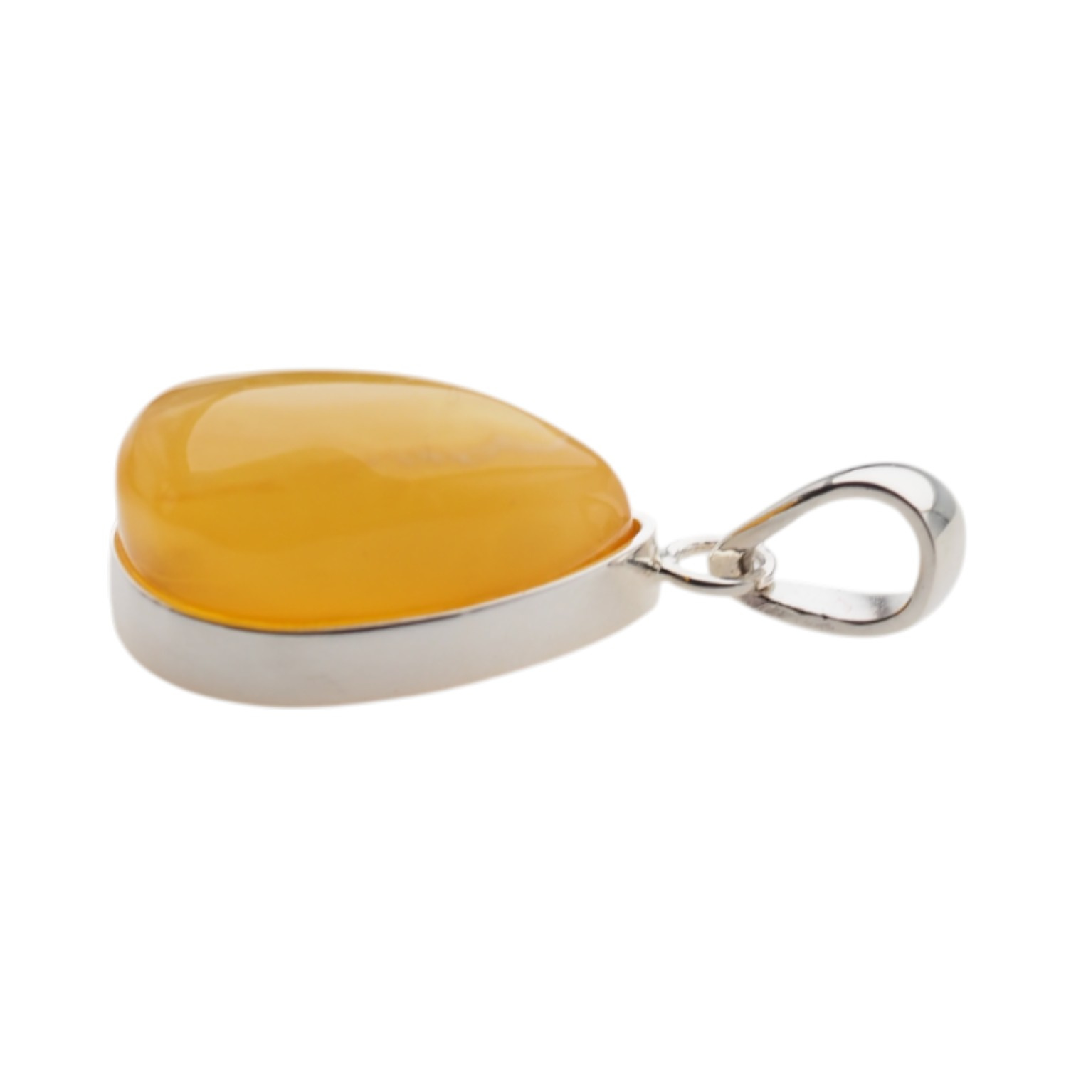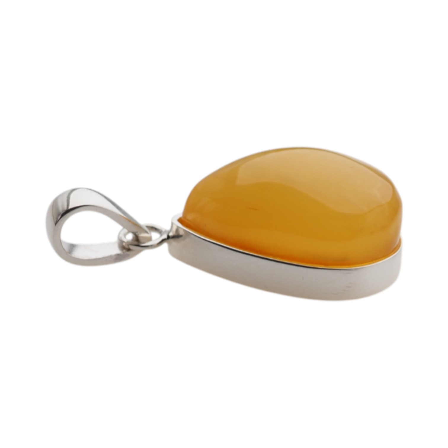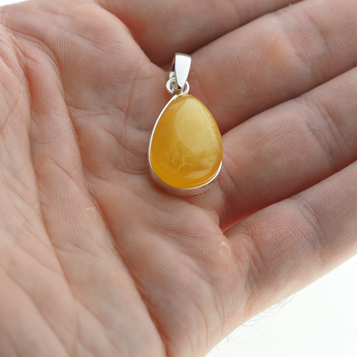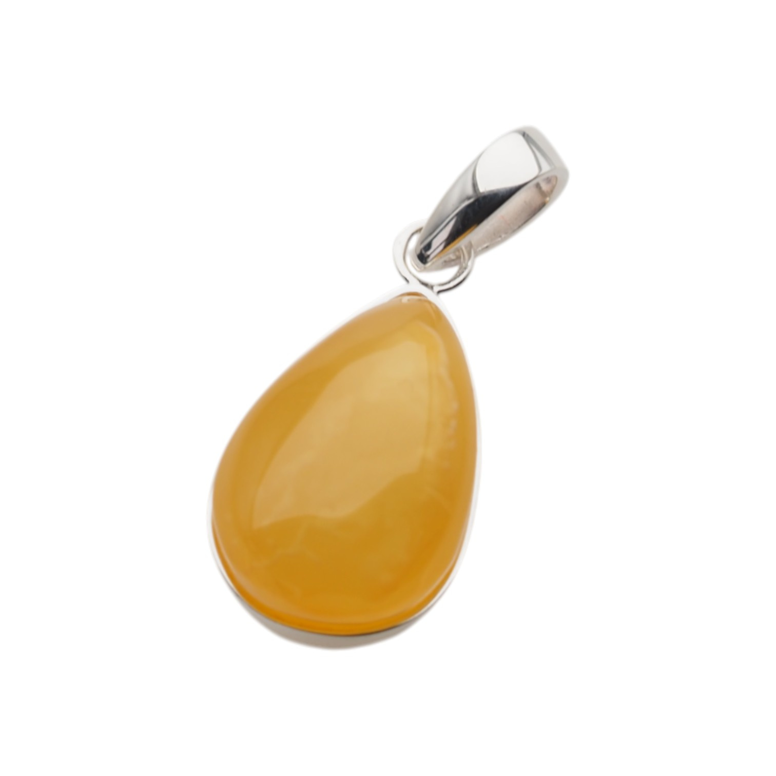Naturalny bursztyn bałtycki w ciepłym, mleczno-miodowym odcieniu został ręcznie osadzony w gładkiej, srebrnej oprawie próby 925. Kamień ma klasyczny kształt łzy oraz delikatnie przezierną, wypolerowaną powierzchnię, która pięknie odbija światło i ukazuje wewnętrzne struktury bursztynu. Prosta forma oprawy pozwala w pełni wyeksponować naturalne piękno kamienia i podkreśla jego szlachetność. Wisiorek jest elegancki, ponadczasowy i uniwersalny – idealny do codziennego noszenia lub na prezent.