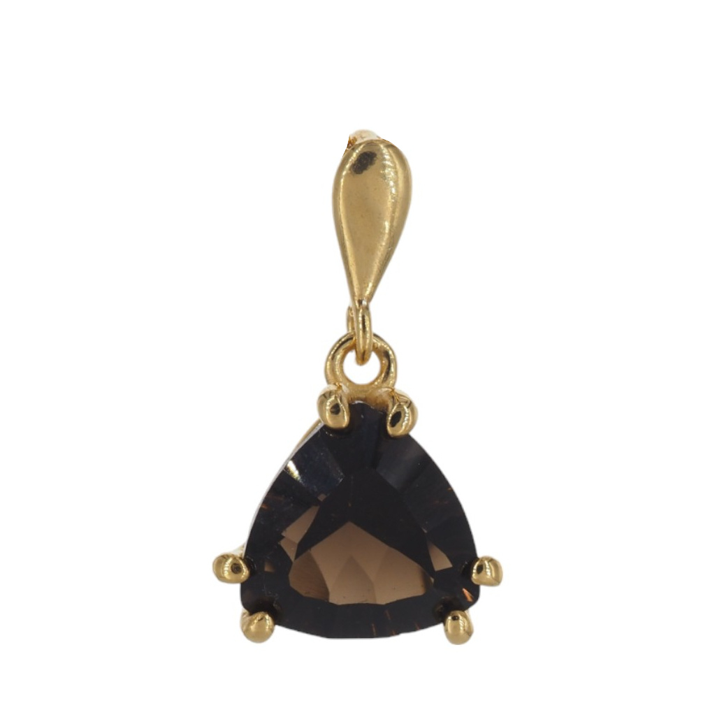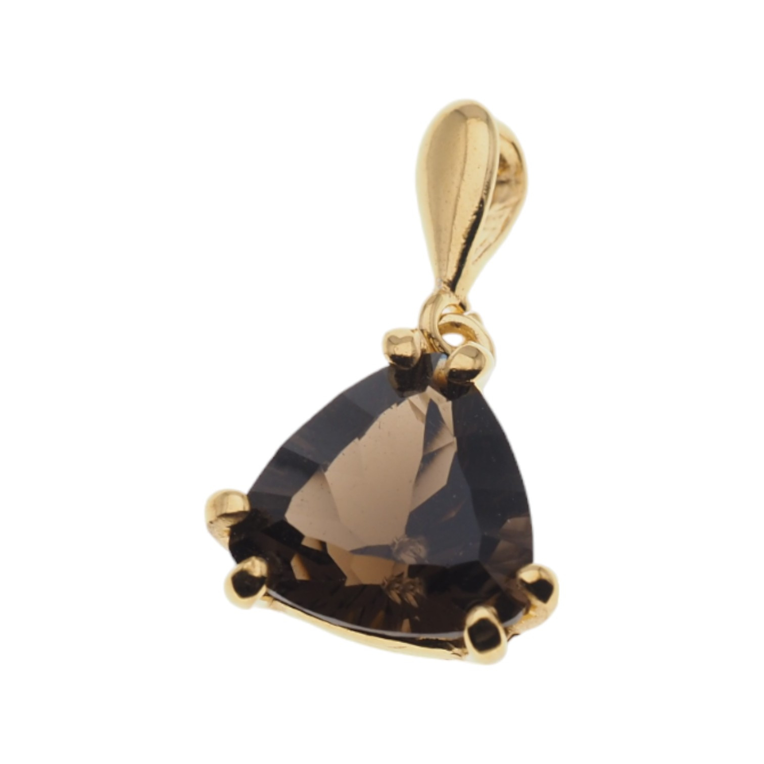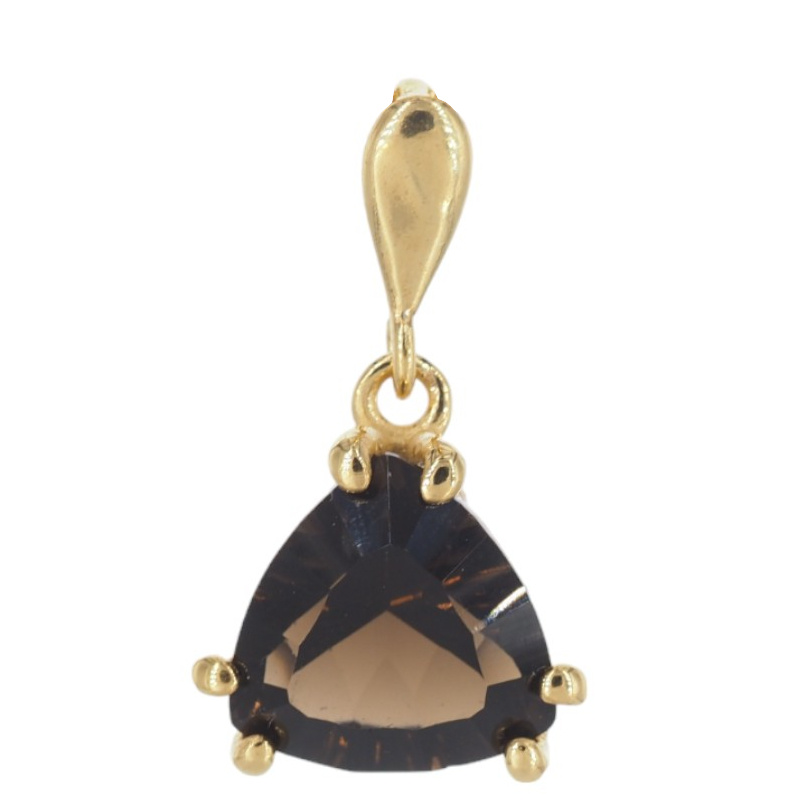 Zawieszka - Kwarc dymny trójkąt (szlif diamentowy) w srebrze złoconym