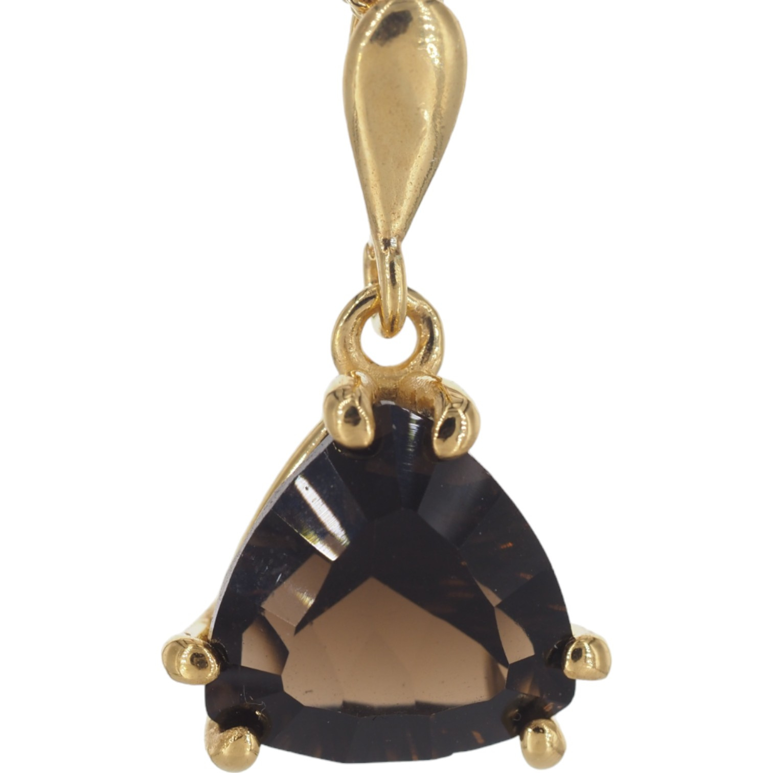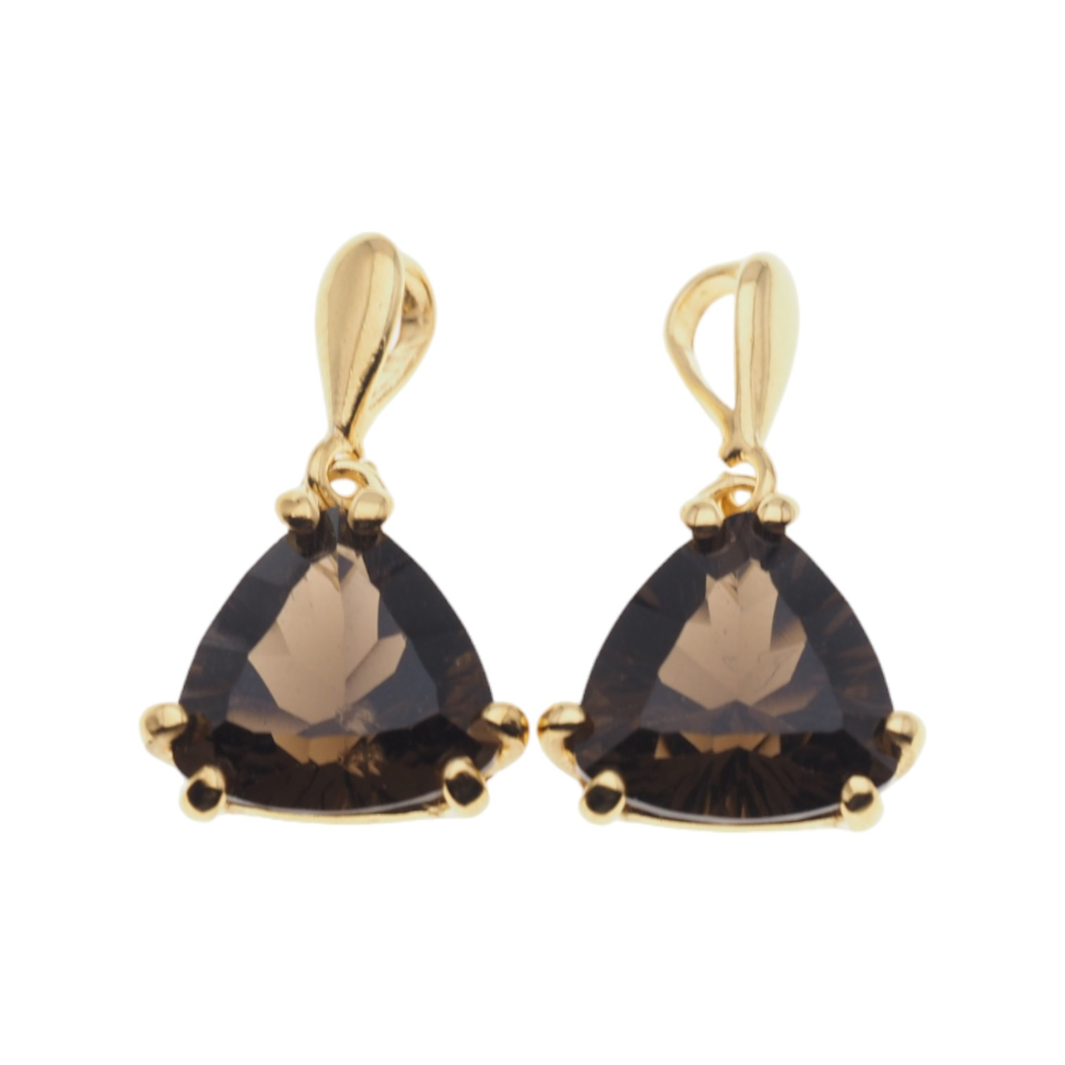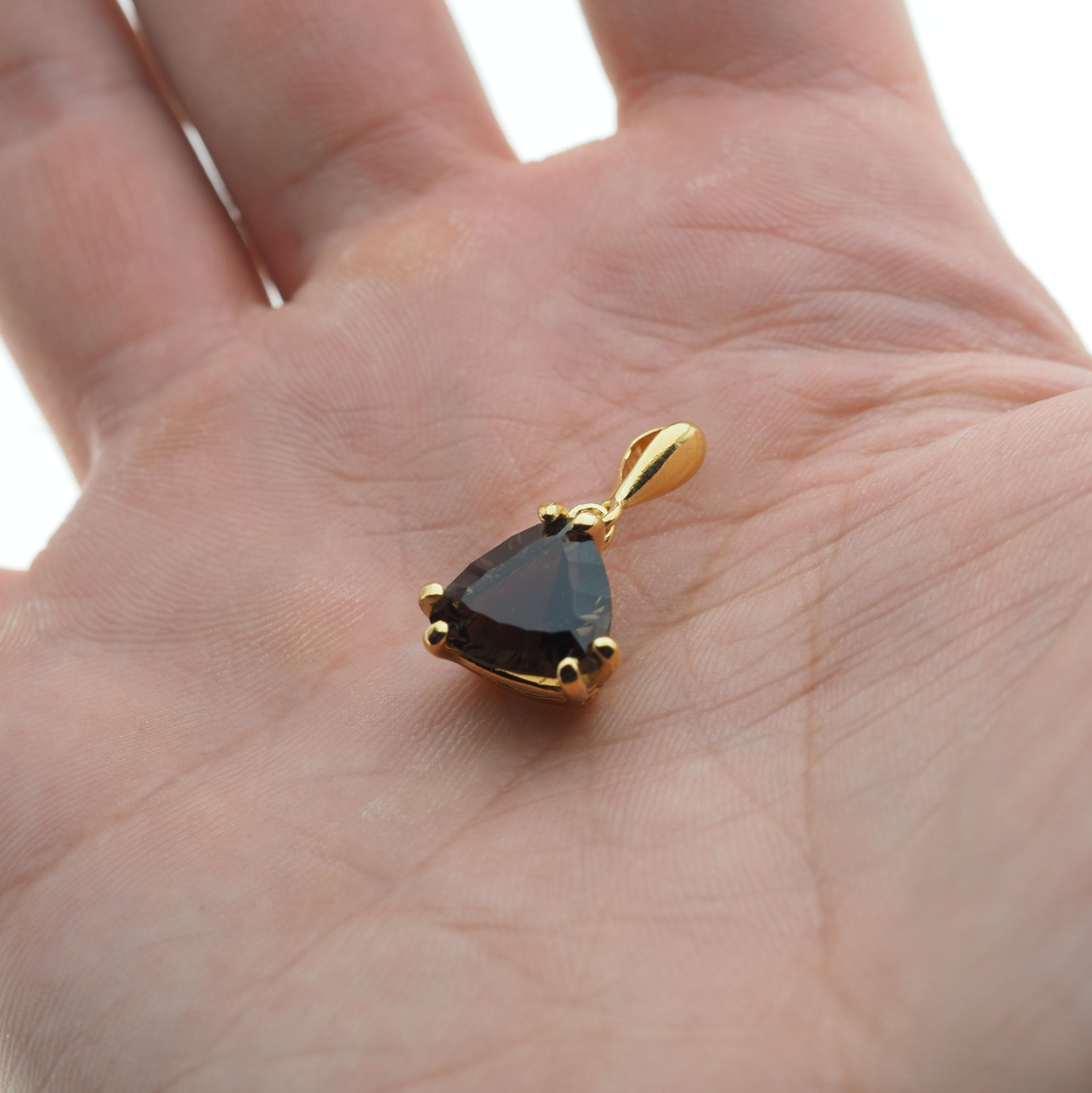 Zawieszka - Kwarc dymny trójkąt (szlif diamentowy) w srebrze złoconym