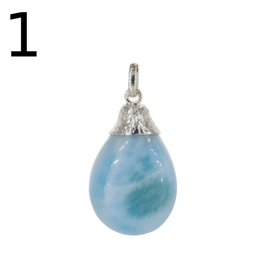Zawieszka - larimar łza w srebrze młotkowanym