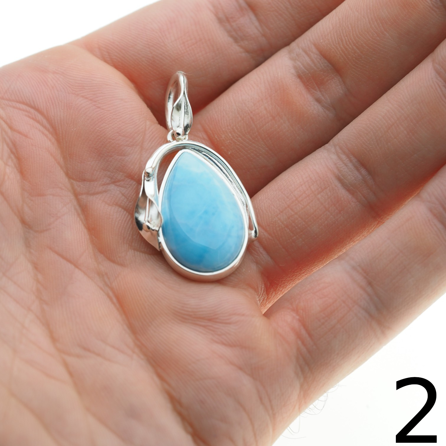 Srebrna zawieszka z larimarem została wykonana ręcznie.