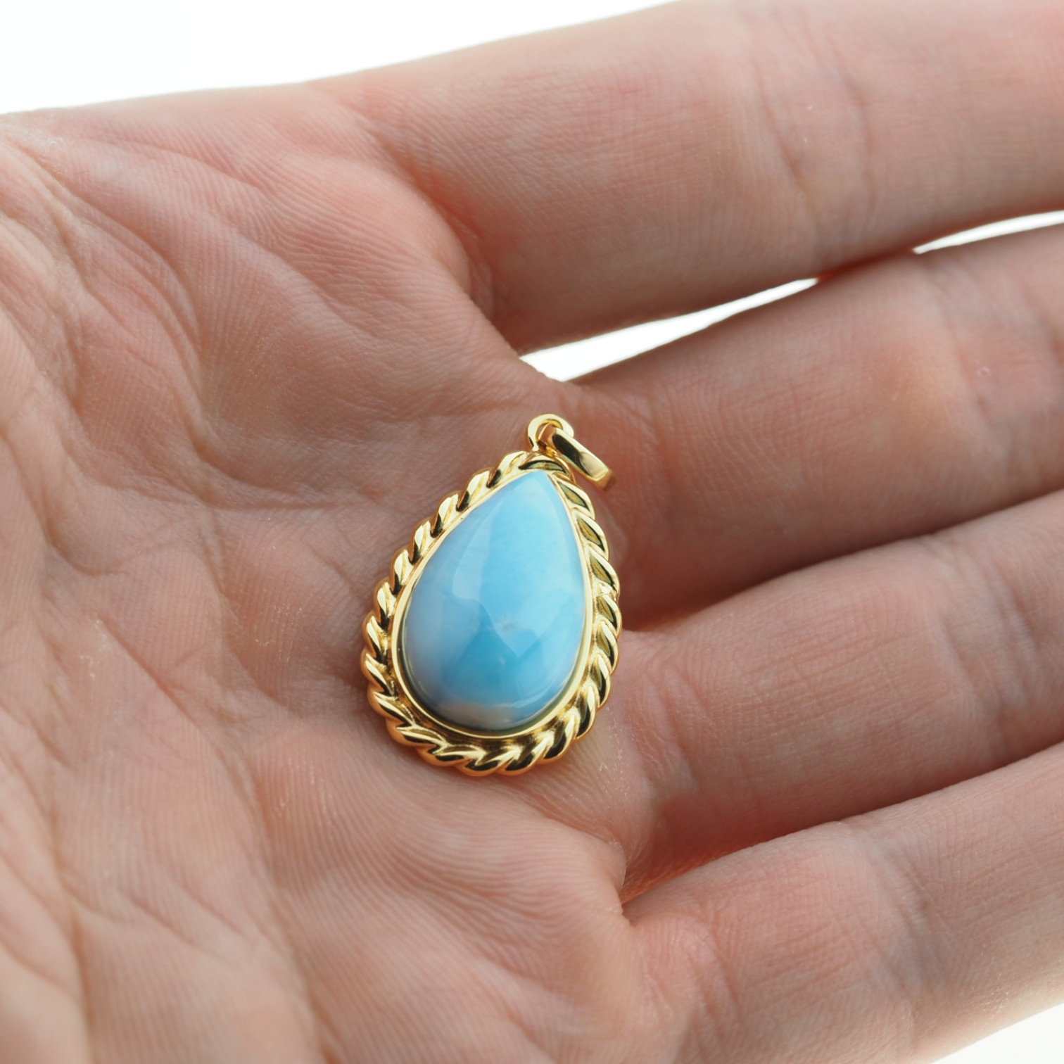 Srebrna, złocona zawieszka z larimarem została zrobiona ręcznie.