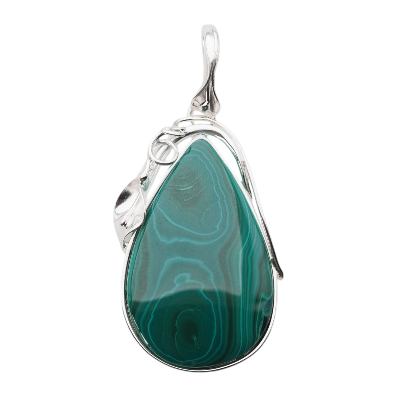Malachit zachwyca intensywną, zieloną barwą oraz charakterystycznymi pasmami w odcieniach od jasnej po głęboką zieleń. Każdy kamień jest unikalny, dzięki czemu każda zawieszka ma swój niepowtarzalny charakter.