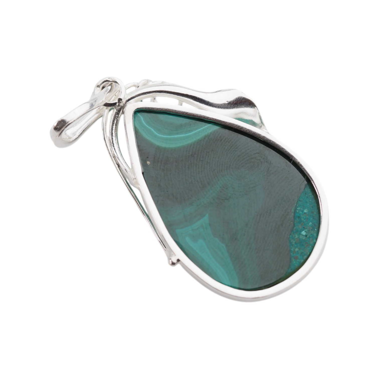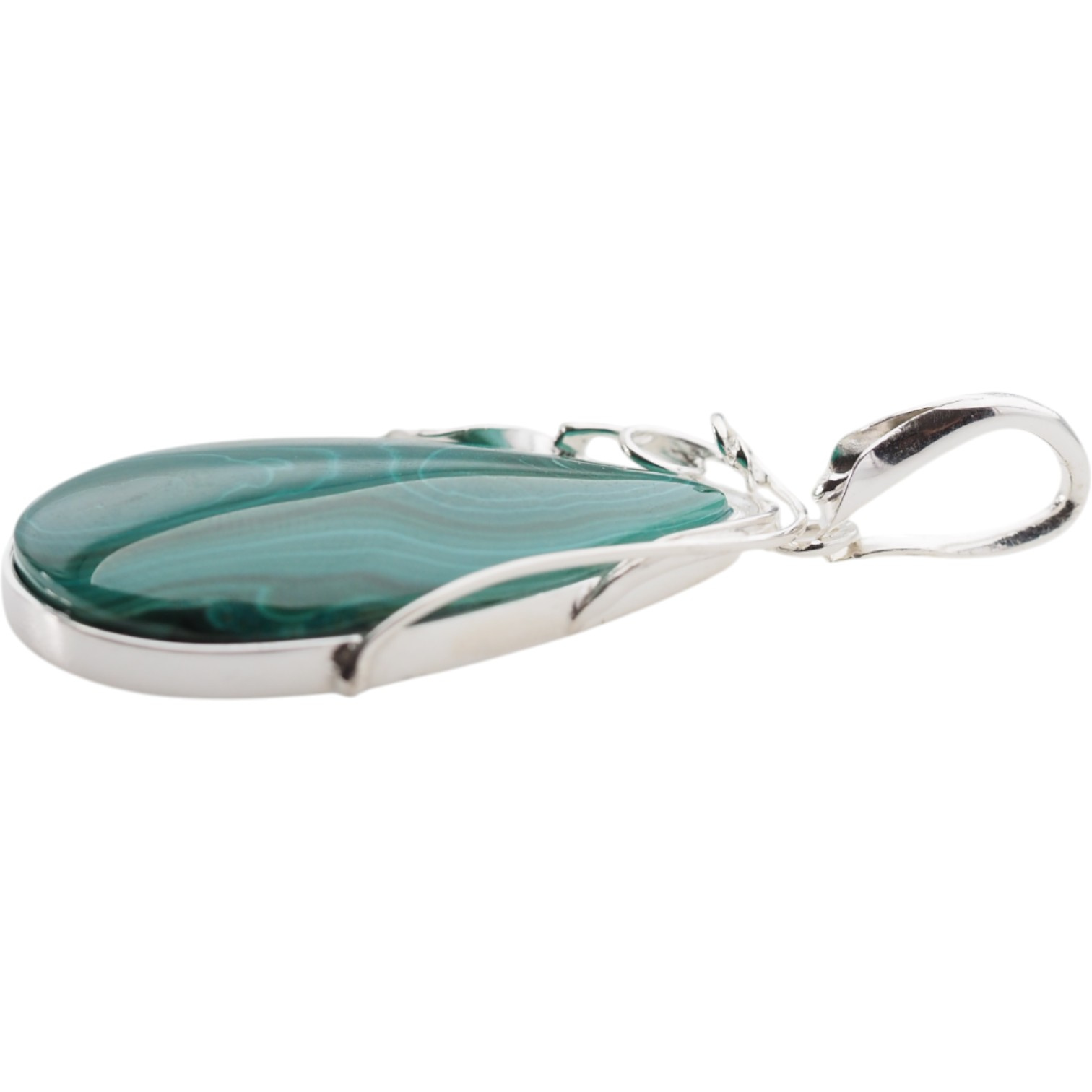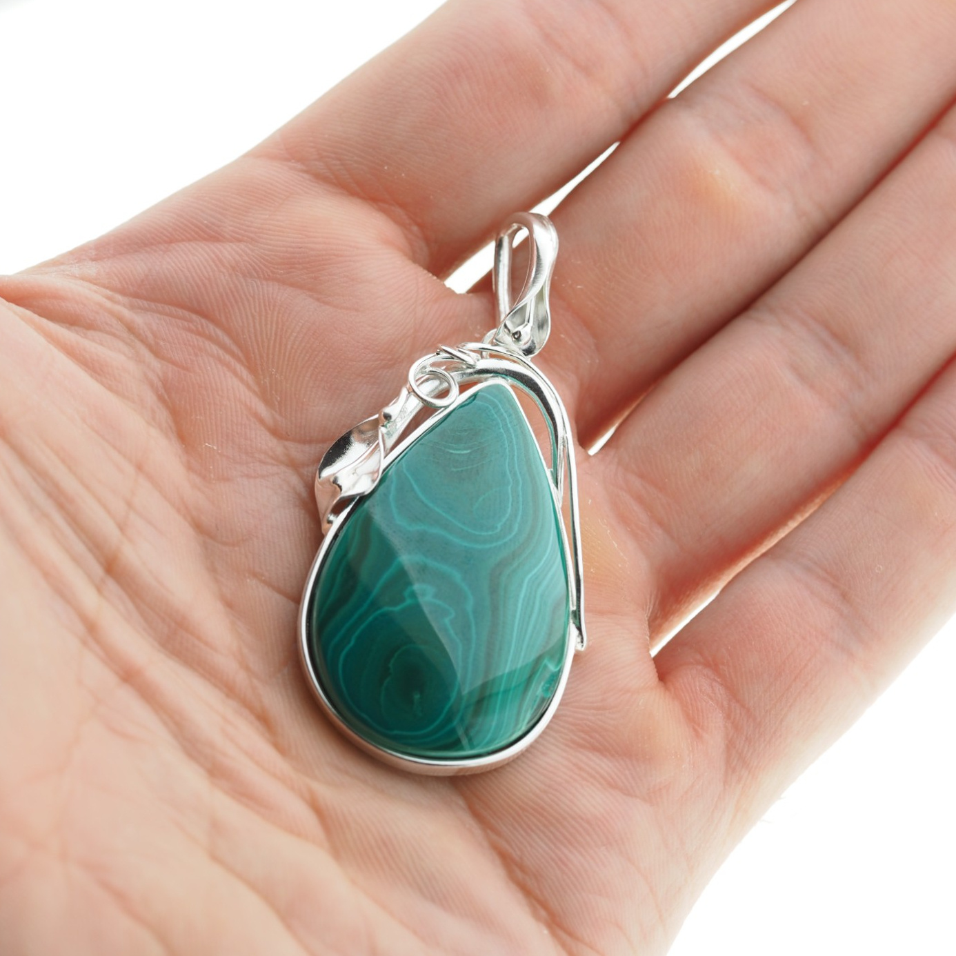 Ręcznie wykonana srebrna zawieszka z malachitem to wyjątkowy dodatek biżuteryjny, który łączy w sobie elegancję i naturalne piękno.
