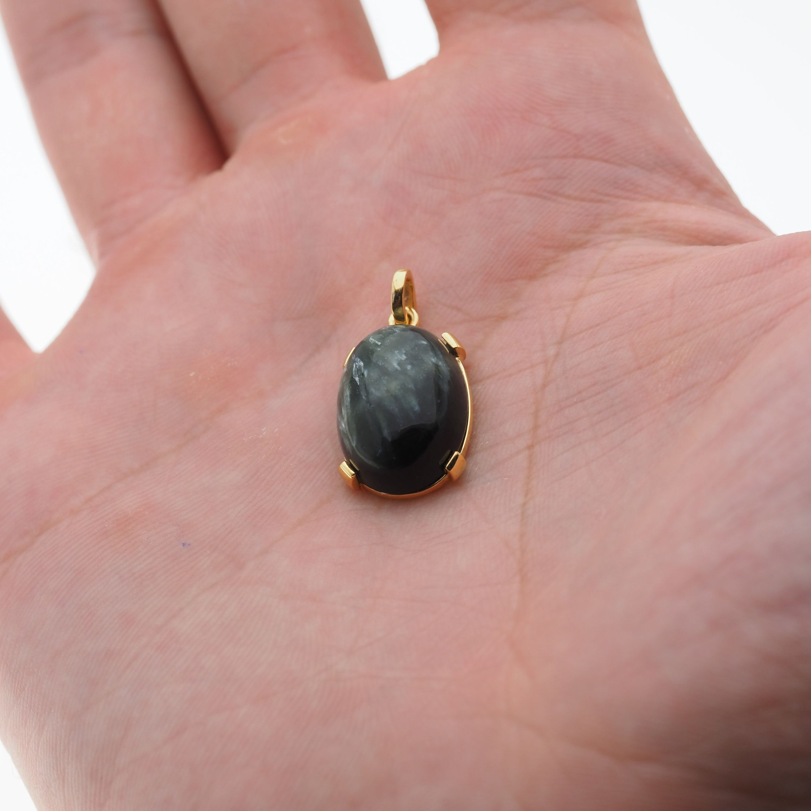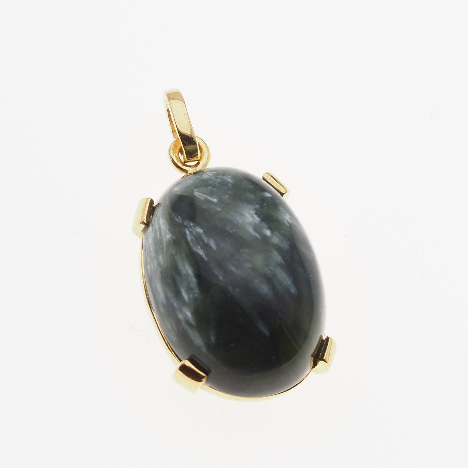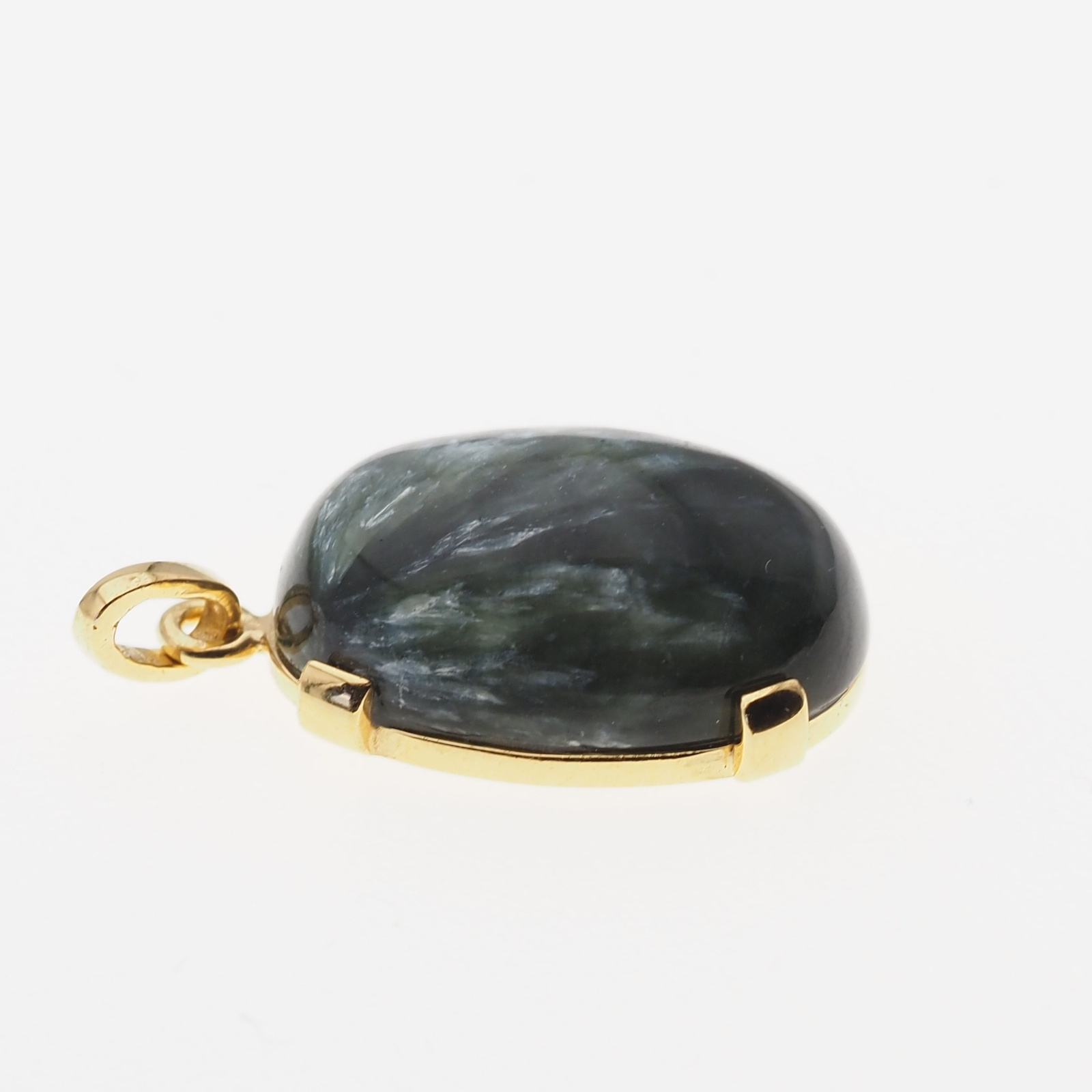 Zawieszka - Serafinit (Klinochlor) owal w srebrze złoconym