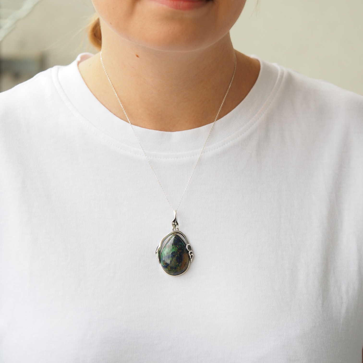 Srebrna zawieszka z Azurytem została utworzona ręcznie.