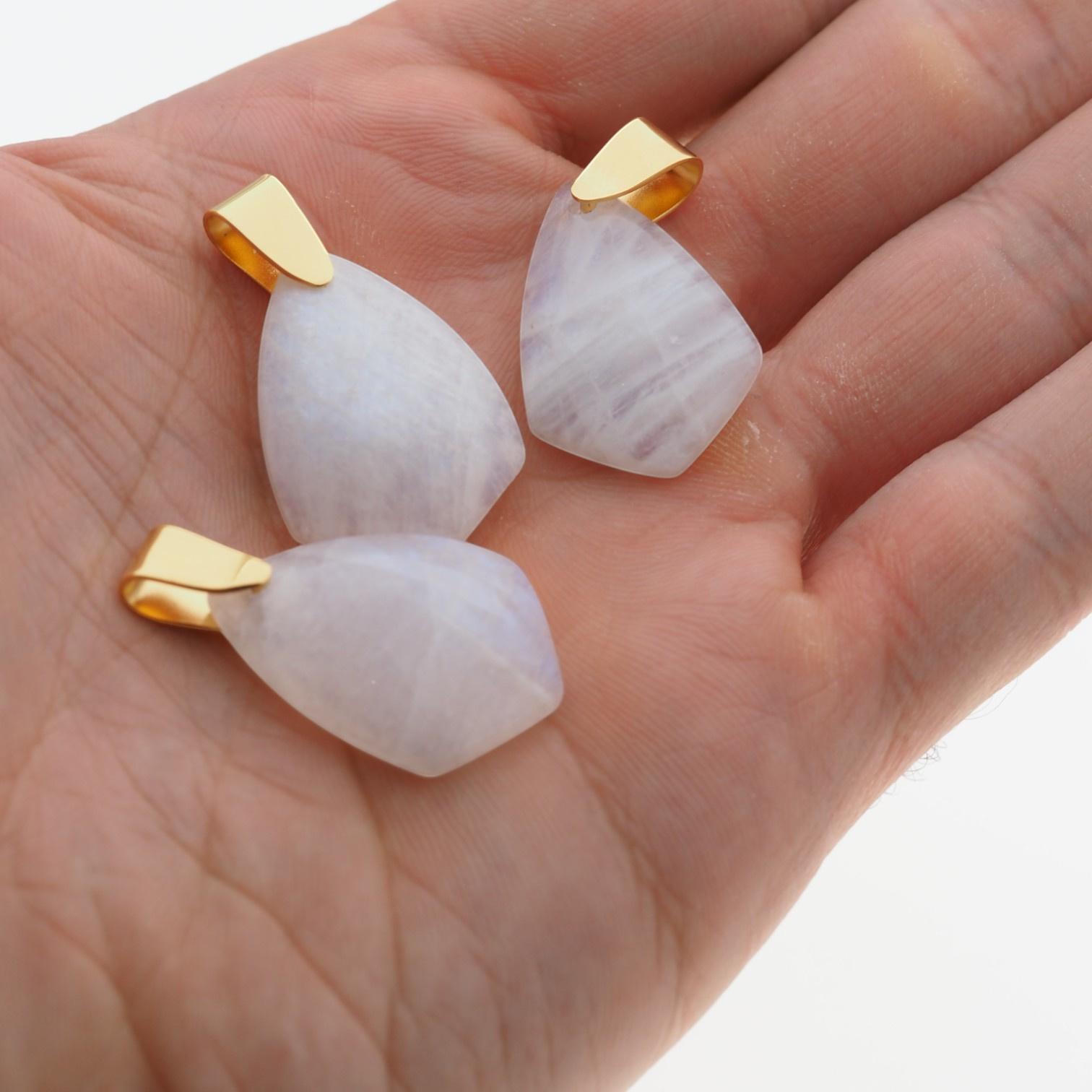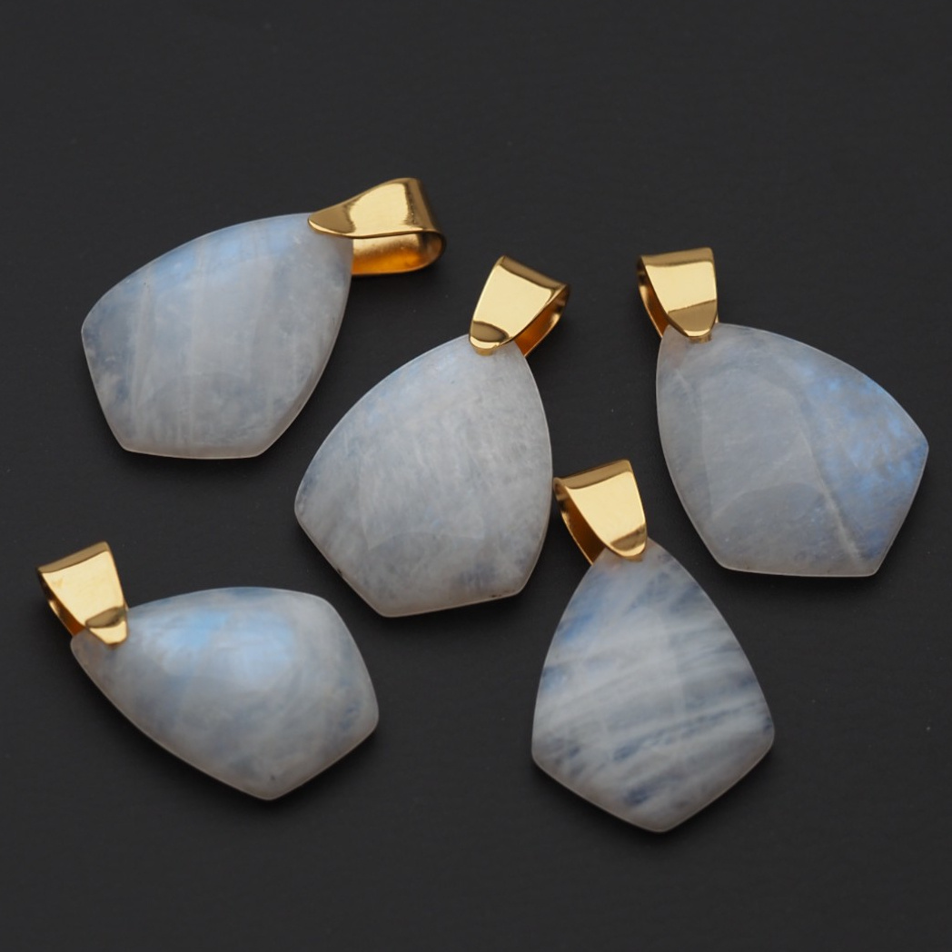 Srebrna, złocona zawieszka z Kamieniem Księżycowym została wykonana ręcznie.