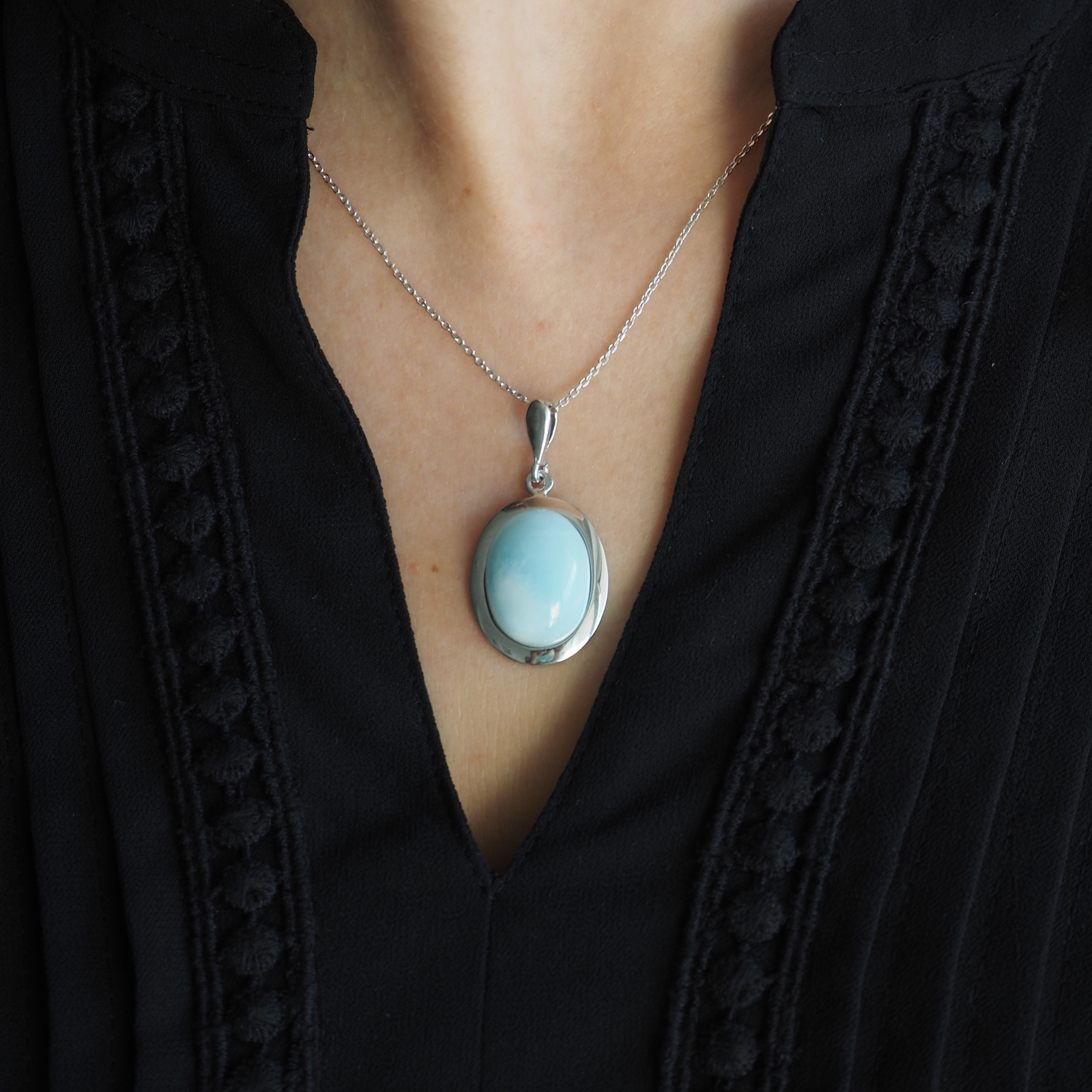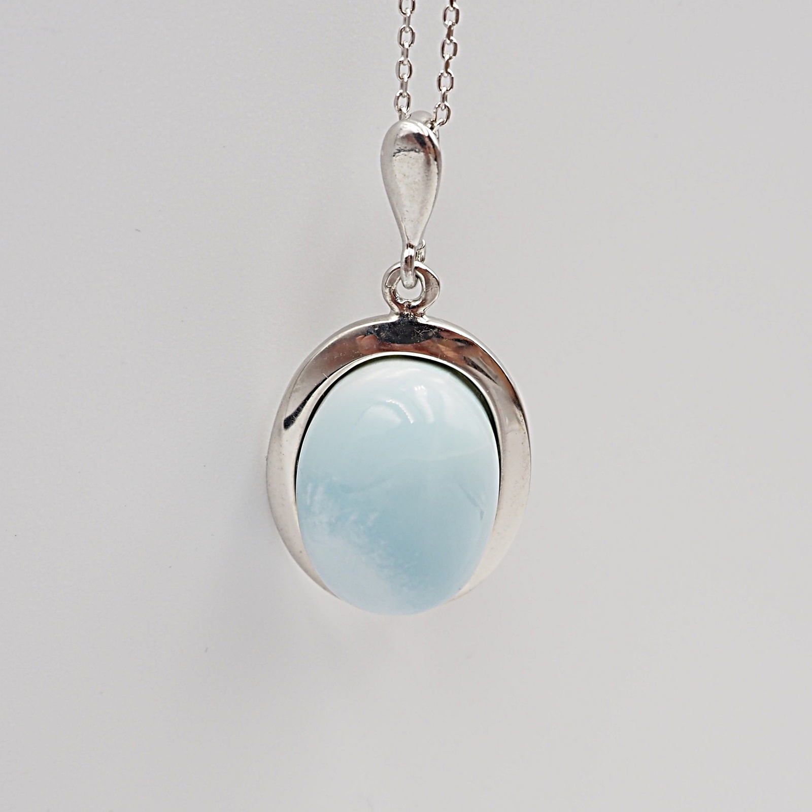 Zawieszka z larimarem owalnym w srebrze rodowanym