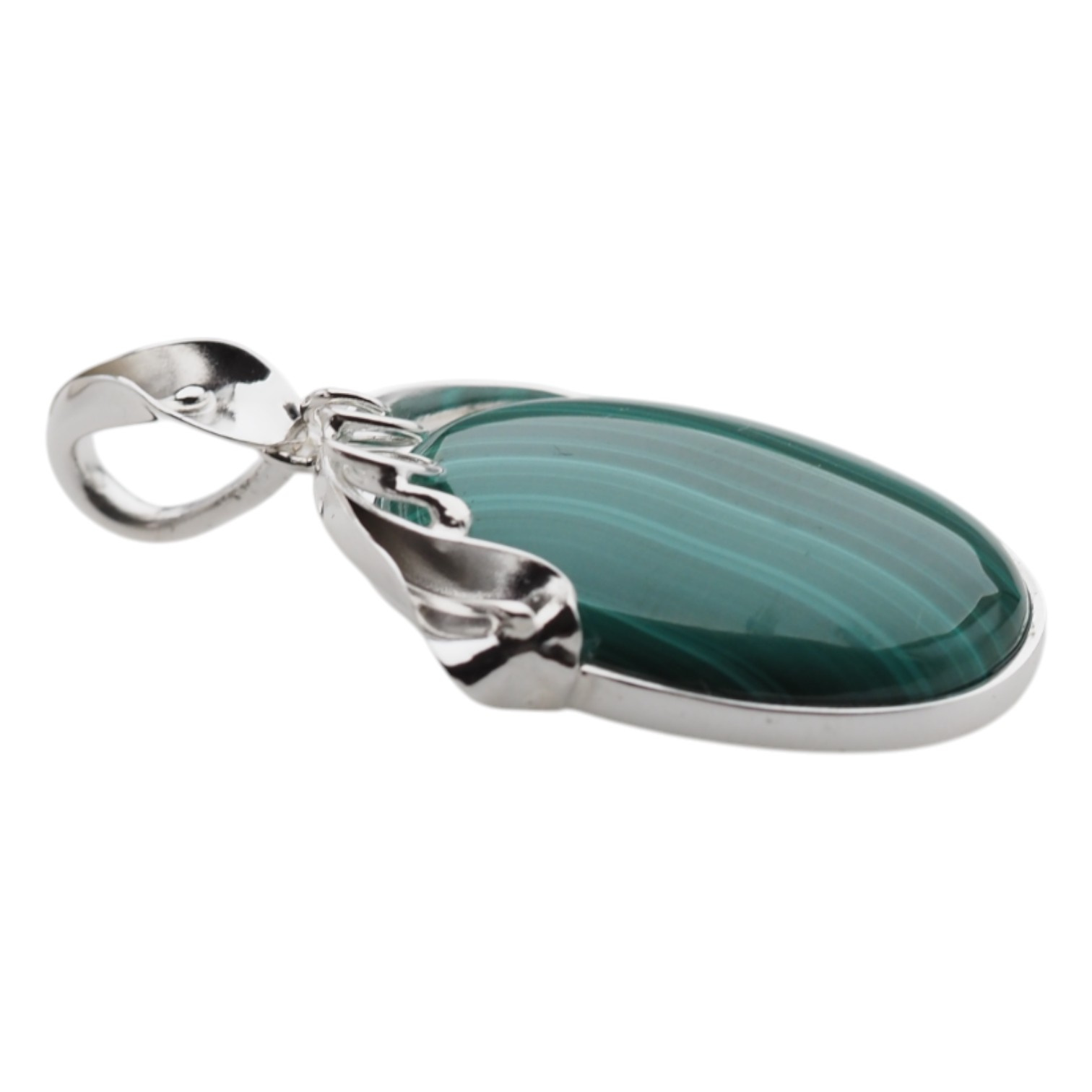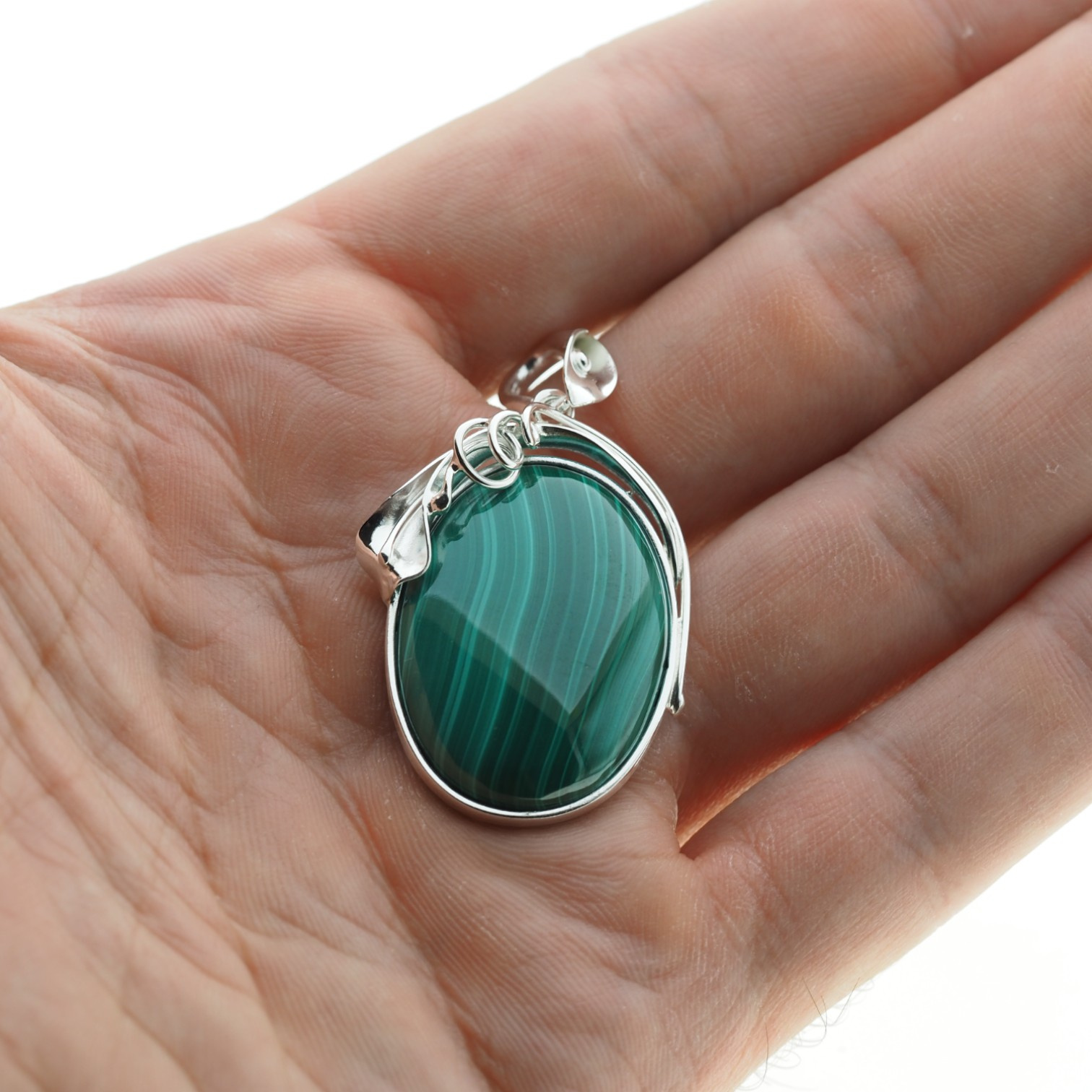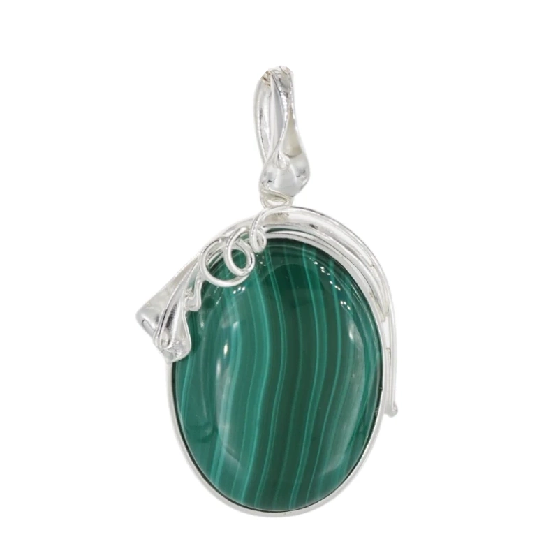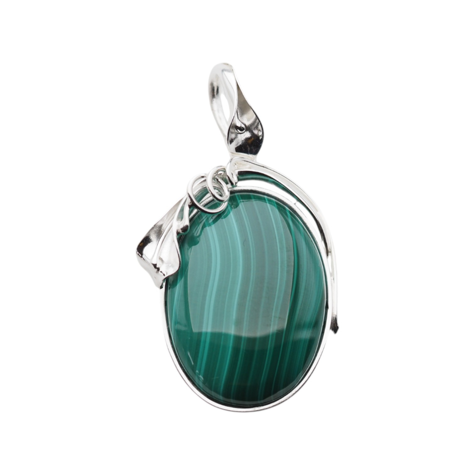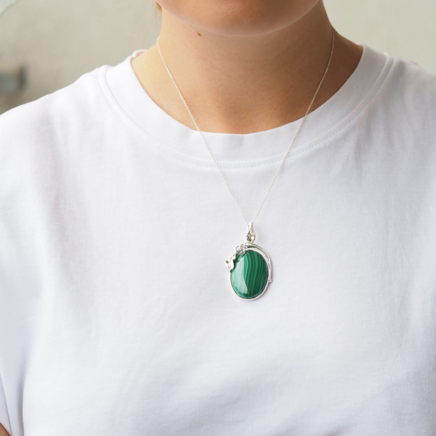 Srebrna zawieszka z malachitem została zrobiona ręcznie.