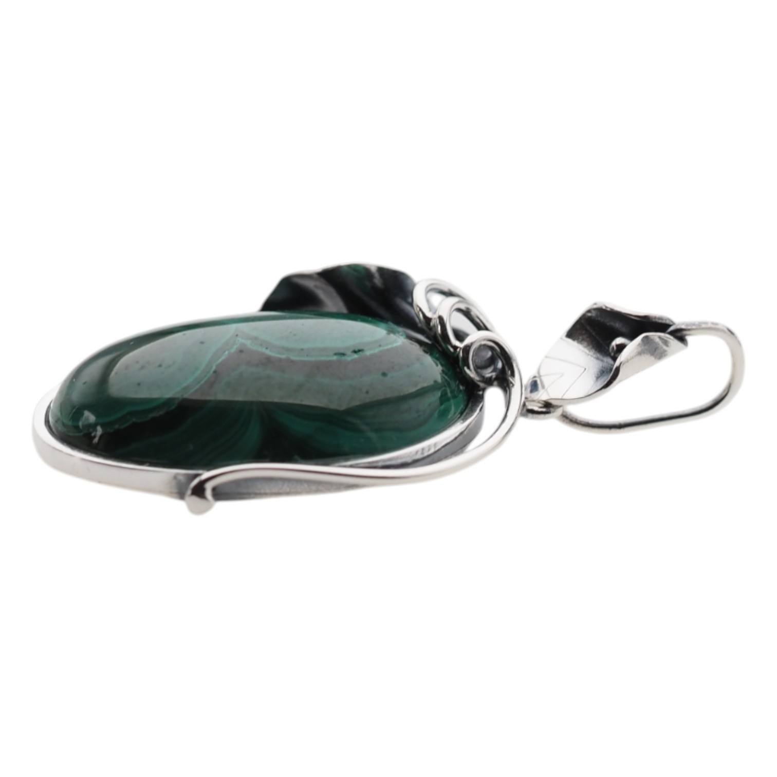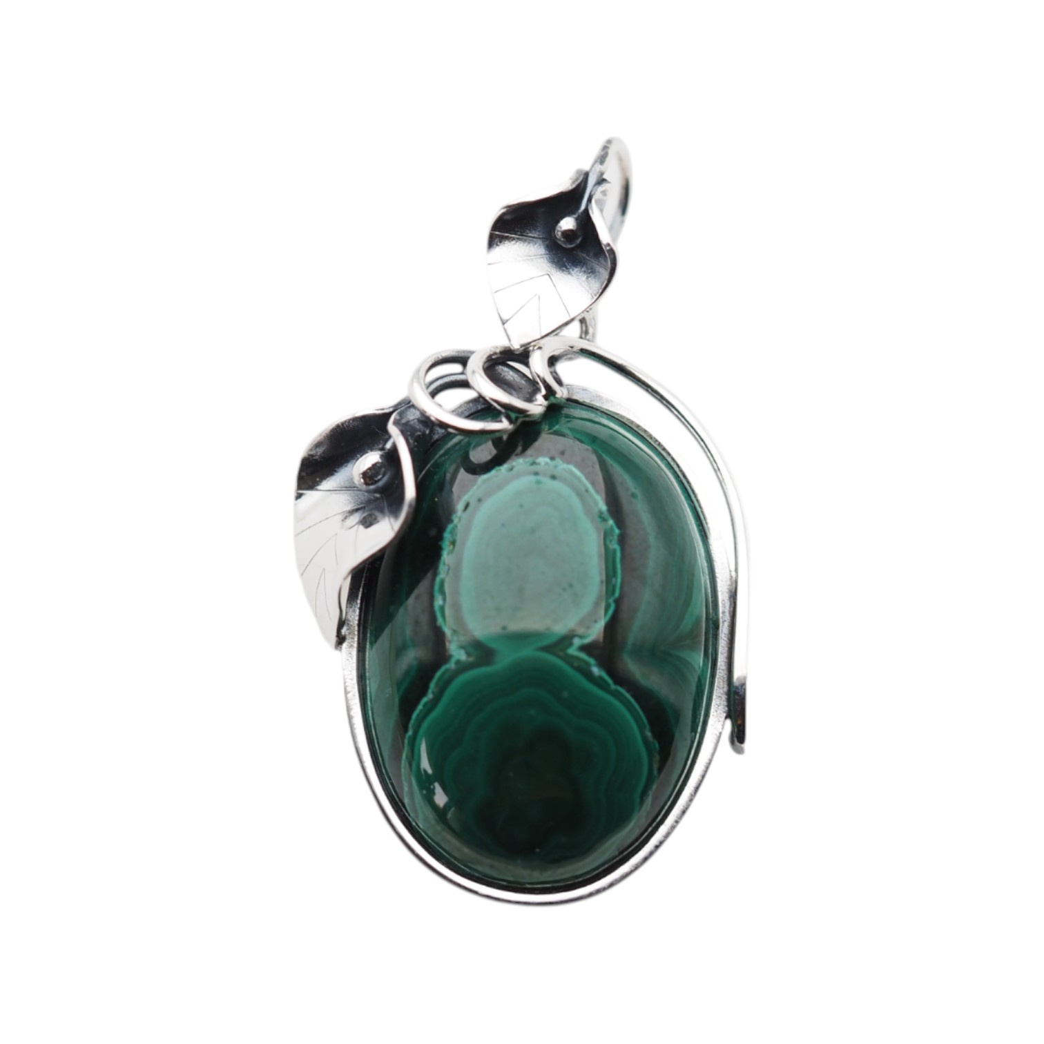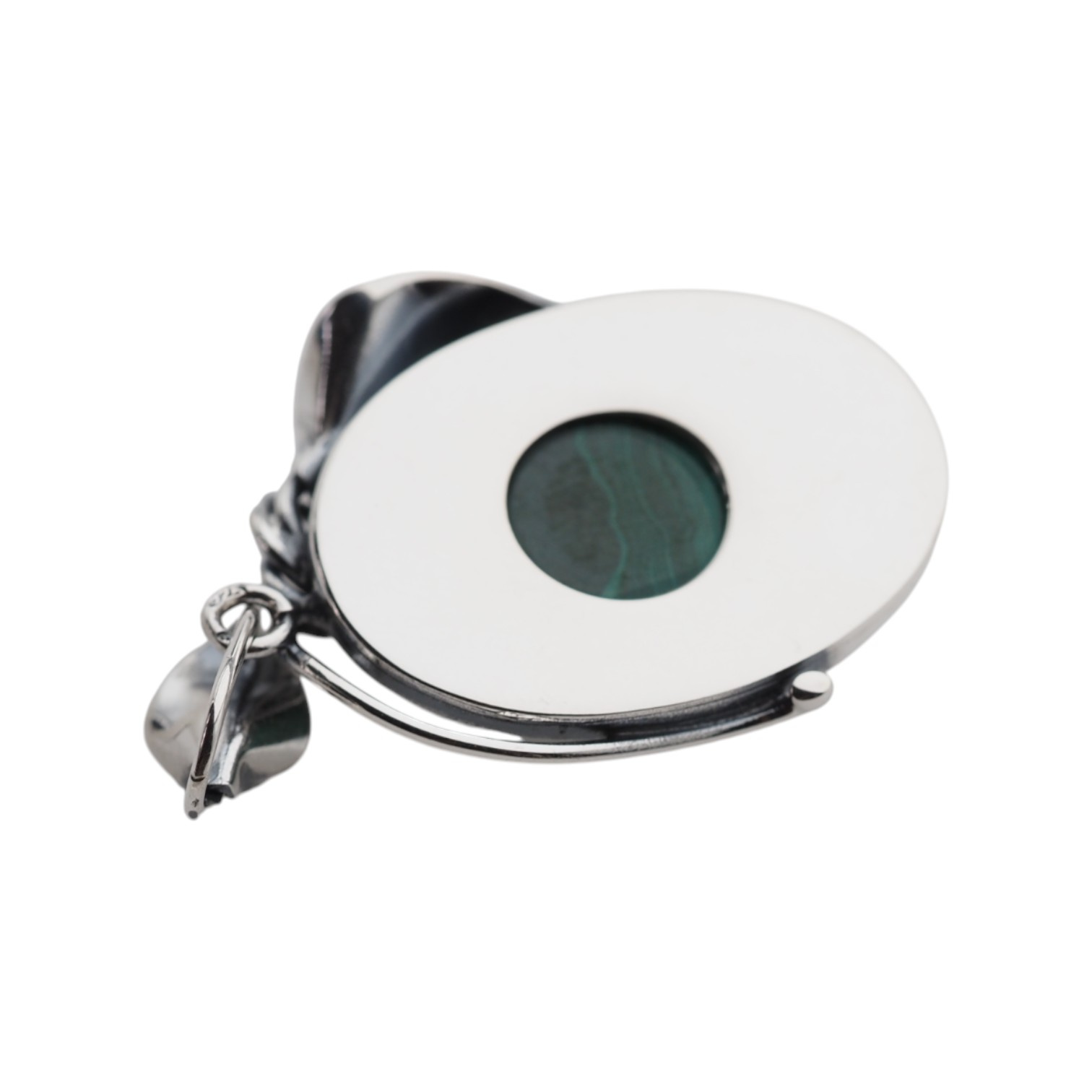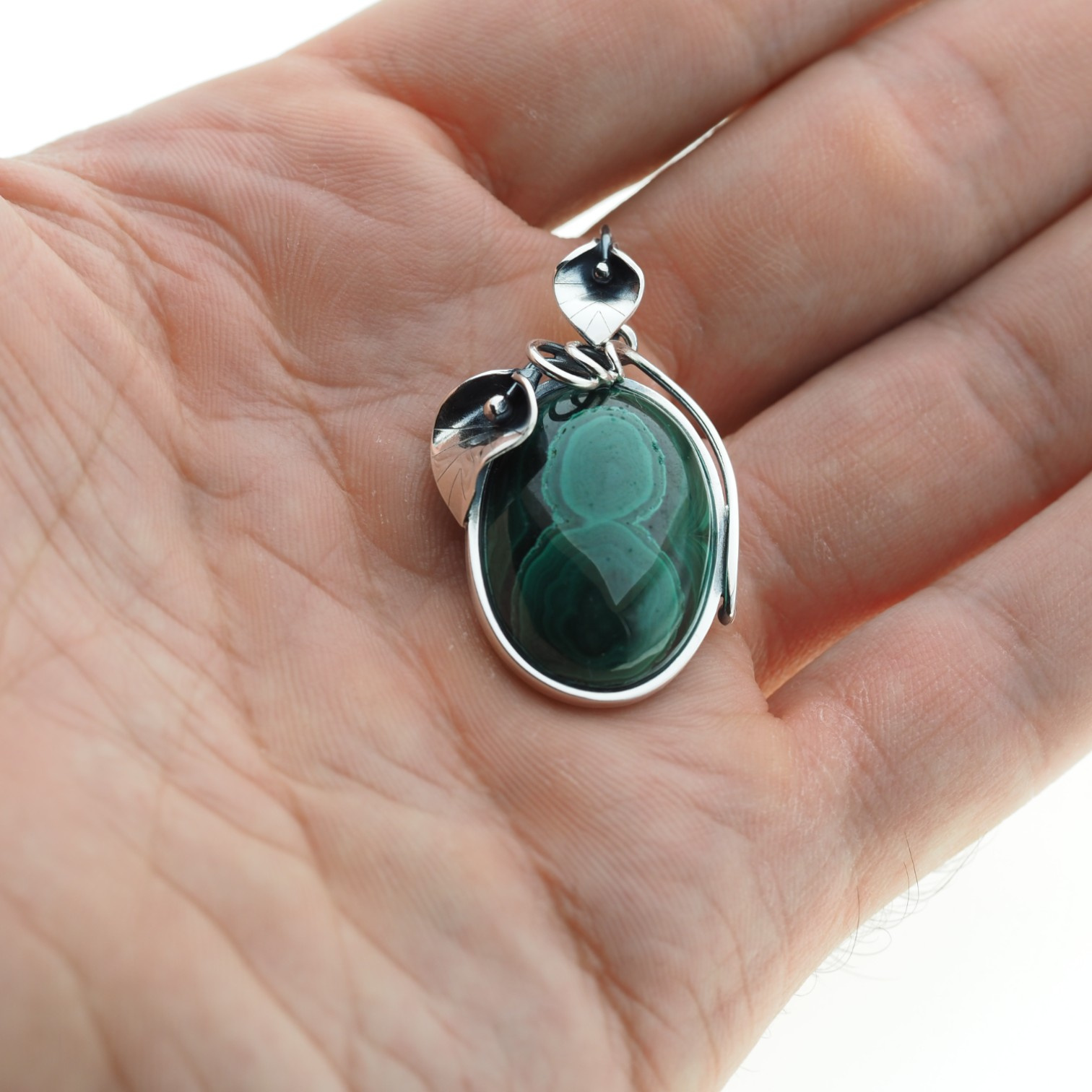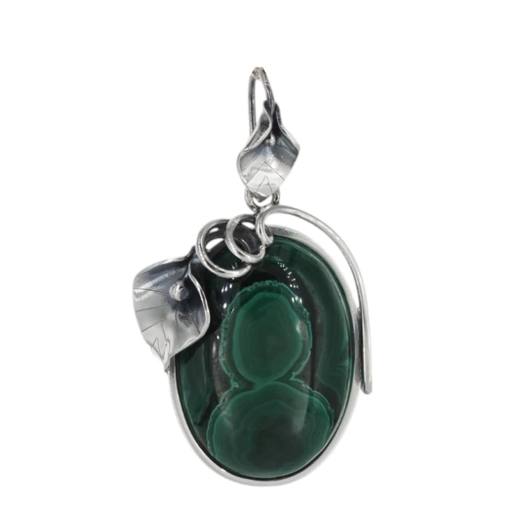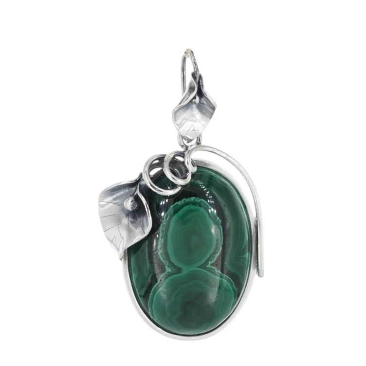 Srebrna zawieszka z malachitem została zrobiona ręcznie.