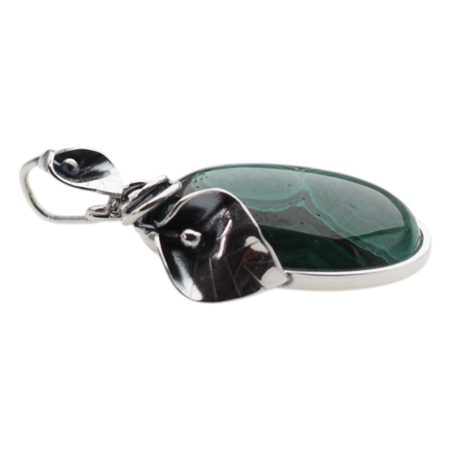Zawieszka z owalnym malachitem w srebrze oksydowanym