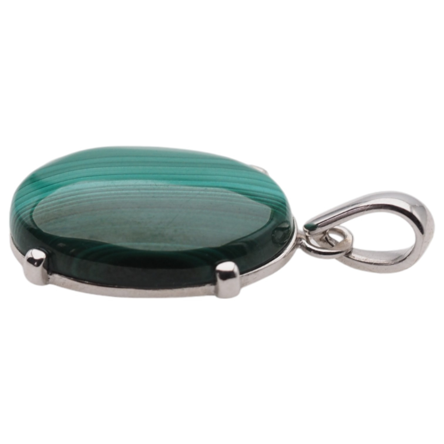 Zawieszka z owalnym malachitem w srebrze rodowanym