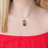 W tej kategorii znajdziesz naszyjniki z kamieniem Tygrysie Oko w wyjątkowej formie sopla – grotu lub kryształu. Każdy egzemplarz osadzony jest w srebrnej pozłacanej oprawie, zawieszony na łańcuszku. Tygrysie Oko to kamień odwagi, skupienia i działania – znany ze swojej hipnotyzującej złoto-brązowej poświaty.