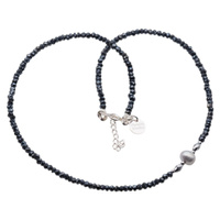 Naszyjnik Lunula z księżycem - Spinel fasetowane kulki, Hematyt i srebro złocone