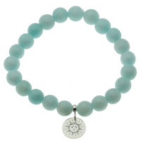 Bransoletka 18 cm - Jadeit miętowy kulki i srebrna zawieszka słońce