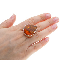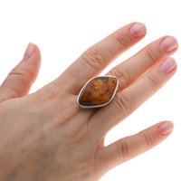 Pierścionek z prostokątnym Bursztynem Koniakowym w srebrze