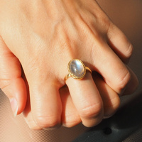 Pierścionek z Labradorytem owalnym w złoconym srebrze młotkowanym