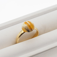 Pierścionek regulowany z okrągłym Bursztynem Mlecznym w srebrze złoconym