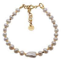 Bransoletka - Perły białe, złoty hematyt i srebro złocone