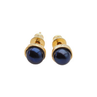 Kolczyki z czarnymi, okrągłymi Perłami w srebrze złoconym