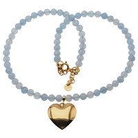 Naszyjnik z sercem - Akwamaryn fasetowany i srebro złocone