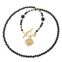 Naszyjnik- Turmalin czarny kulki, zawieszka oko proroka i srebro złocone