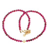 Naszyjnik z czterolistną koniczyną - Jaspis cesarski różowy i srebro złocone