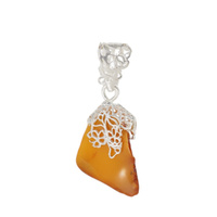 Zawieszka - koniakowy Bursztyn trójkąt w srebrze